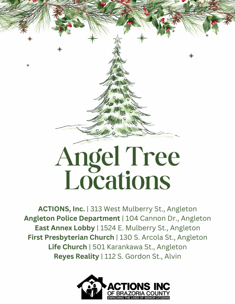 Every Christmas season, ACTIONS, Inc. extends a helping hand to our seniors in need through our heartwarming initiative, the “Senior Angel Tree.” This thoughtful program invites individuals from our community and beyond to embrace the spirit of giving by “adopting a senior” and fulfilling their holiday wishes. It’s a beautiful opportunity to provide comfort and joy to those who may find the season challenging. Join us in spreading the true essence of Christmas to our beloved seniors! This year’s trees are now set up in 6 different locations, thanks to our community partners.